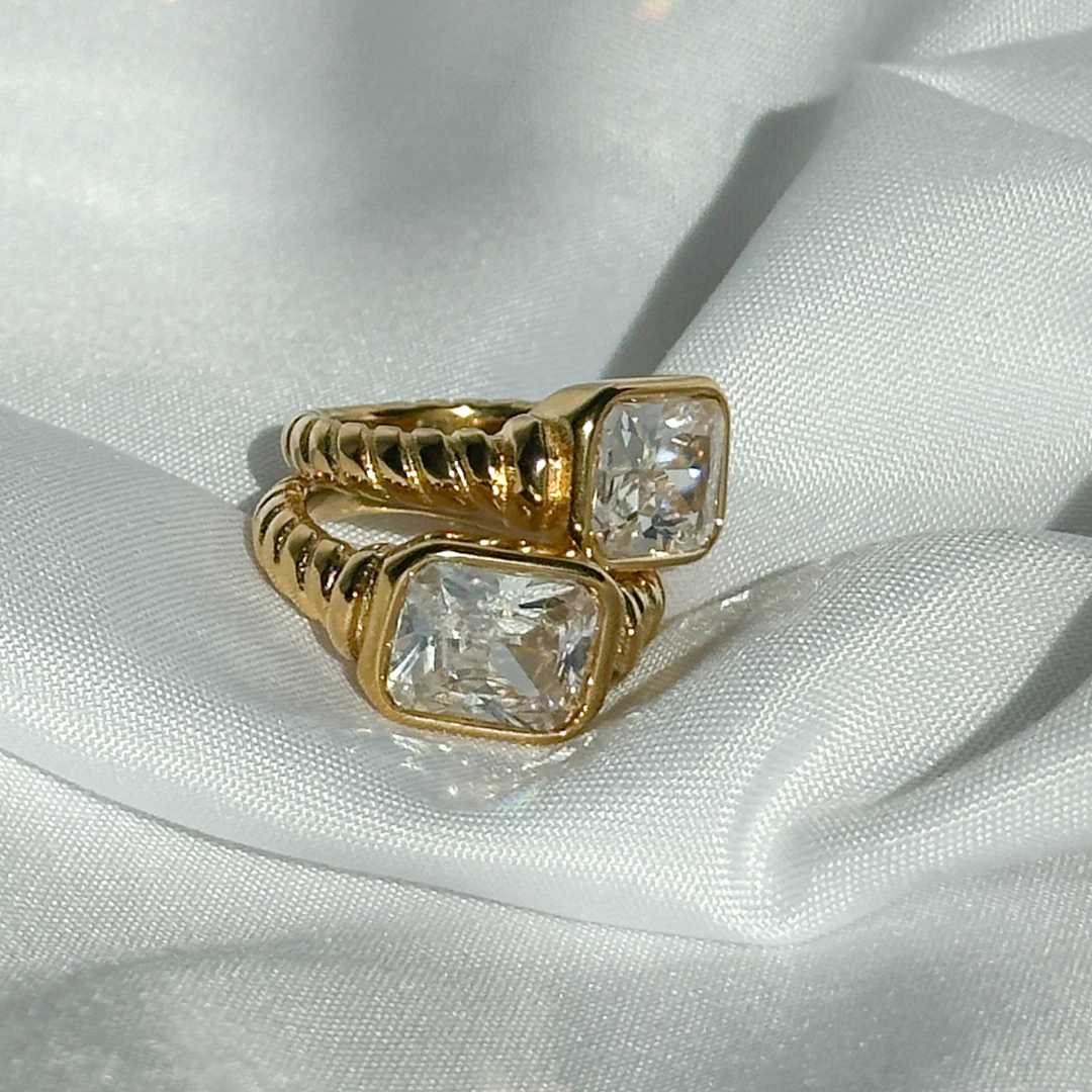 The ALBA Ring is a unique piece of jewelry with textured detailing and sparkling cubic zirconia. It is sure to add a touch of glamour to any look and shine brightly in the light. Available in sizes 6-8, this delicate piece is perfect for any special occasion.