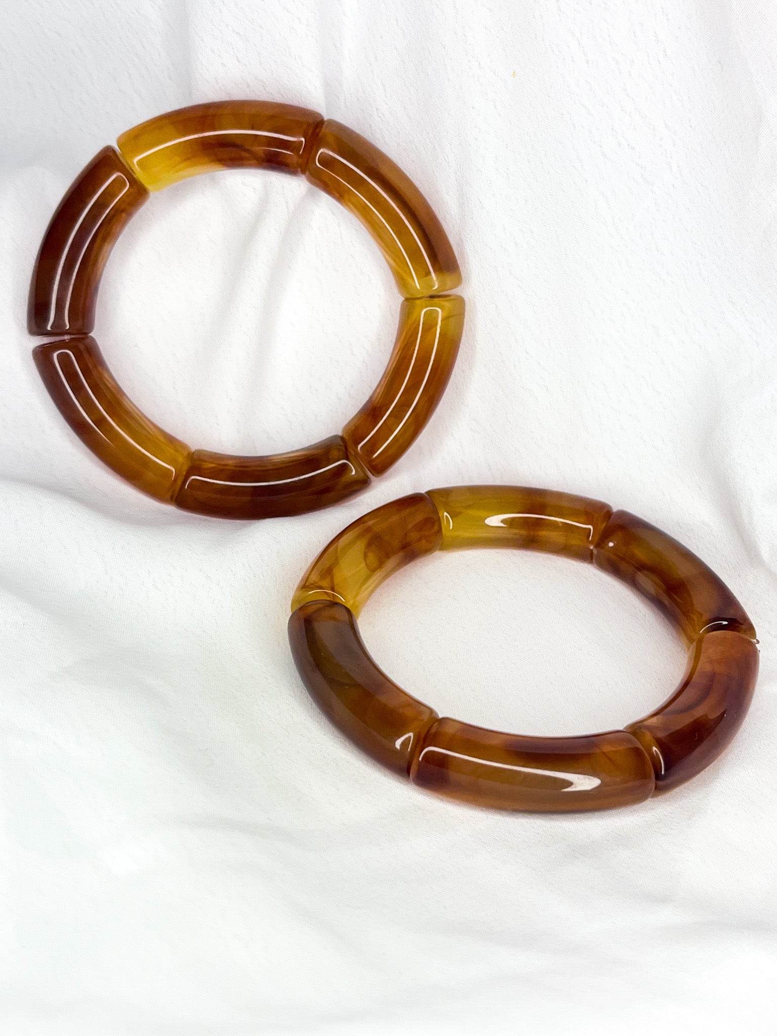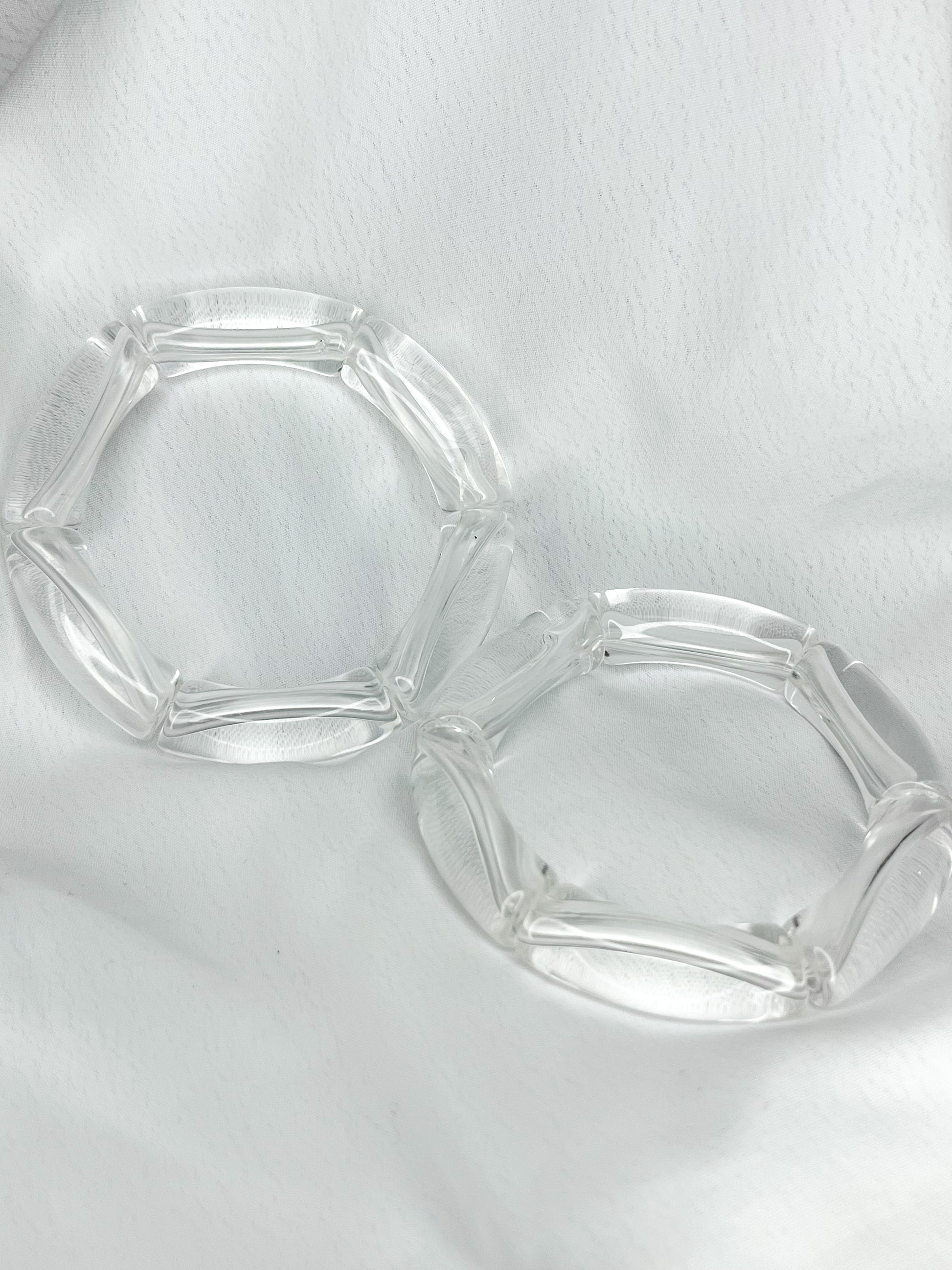 AVANI Bangles are a stylish accessory that come in a two-piece set. The bangles are expertly crafted using a durable resin material and feature a comfortable elastic band to ensure a snug fit. The bangles come in colors mocha or clear.